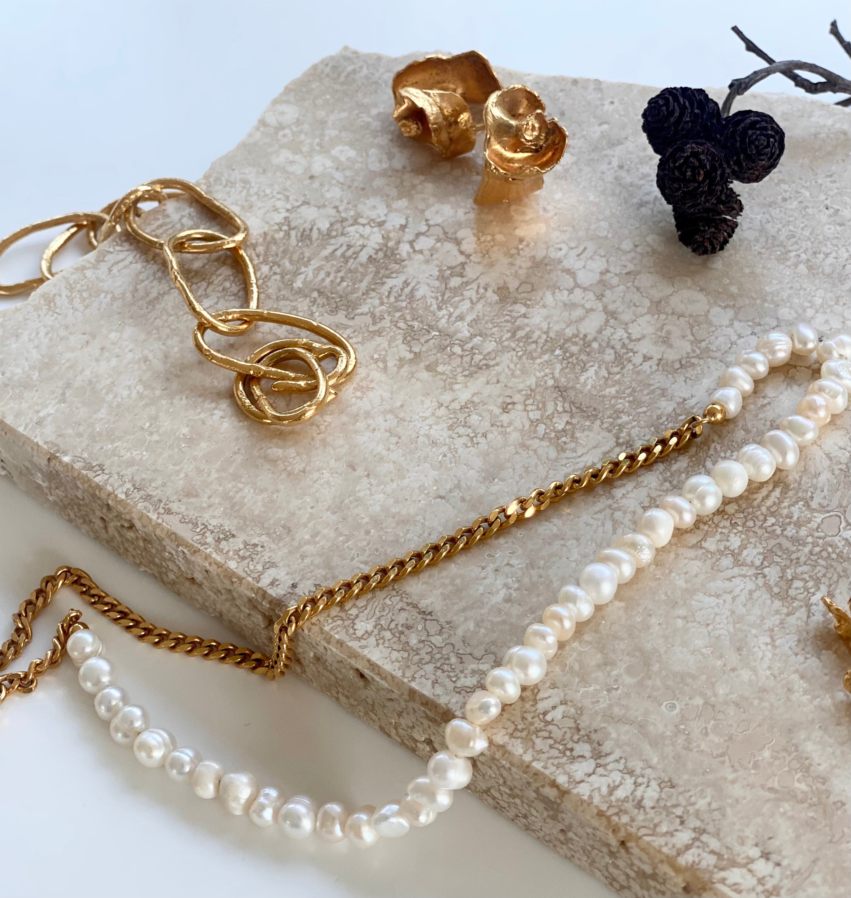 The special thing about handmade jewelry is that the process is different each time. Working the materials by hand, creates a playfulness and uniqueness that makes each piece of jewelry slightly different from the next one.